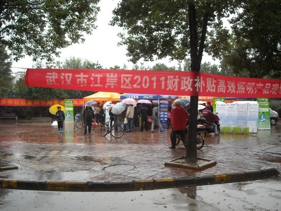 圖為:武漢市百步亭社區(qū)高效照明產(chǎn)品推廣售賣會現(xiàn)場